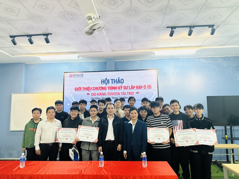Sáng ngày 09/12/2025, buổi hội thảo giới thiệu chương trình Kỹ sư lắp ráp ô tô do hãng Toyota tài trợ đã diễn ra thành công tại trường thực hành Aspace. Sự kiện đã thu hút sự tham gia đông đảo của sinh viên quan tâm đến định hướng nghề nghiệp quốc tế trong lĩnh vực công nghệ ô tô.